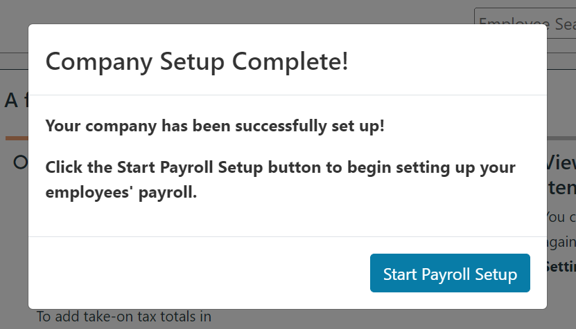 Proceed to set up your payroll by clicking Start Payroll Setup (above).